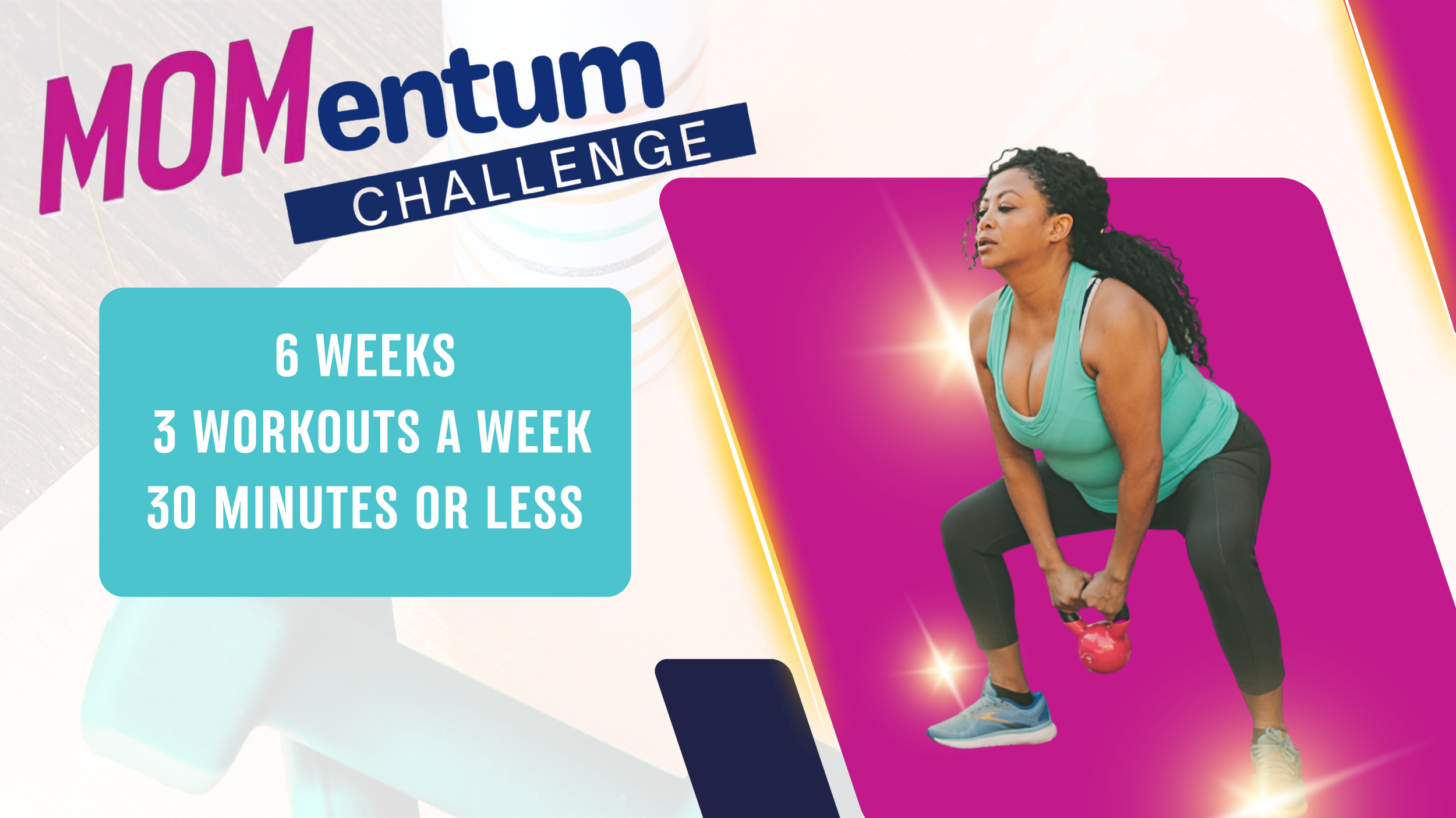 The MOMentum Challenge was built for you — quick, powerful 30-minute workouts you can do from home, with a plan that keeps you accountable and motivated every step of the way.
